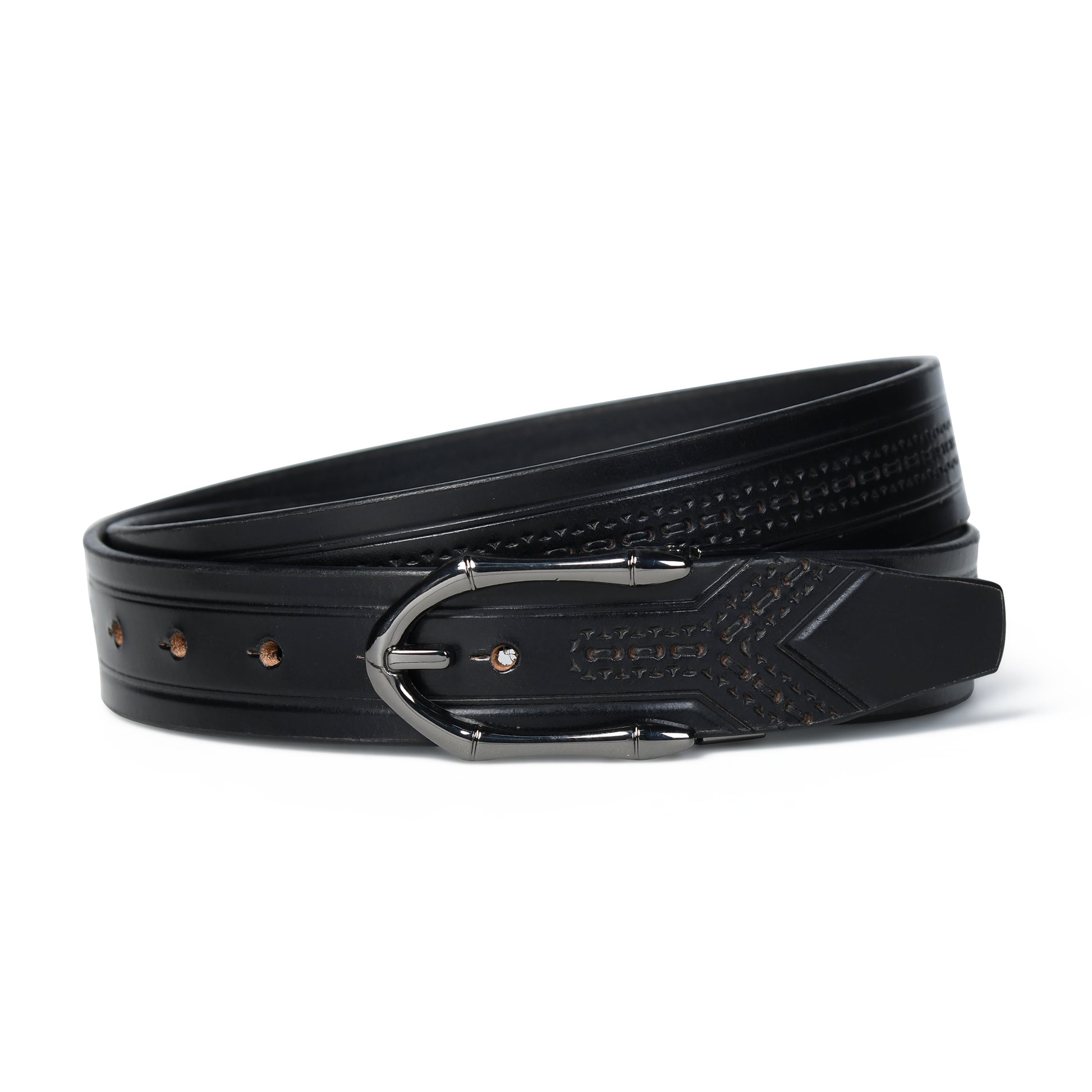 Designer Casual Black Leather Belt with Black-Silver Buckle
